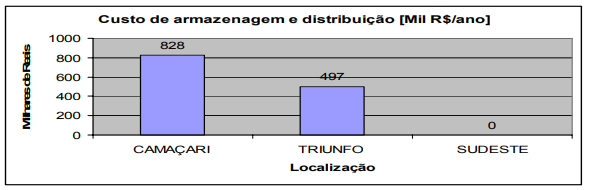 Portanto, embora a pesquisa exclua as interferências dos demais fatores à montante e à jusante da logística de distribuição, o modelo de análise e a metodologia adotada nos permitem afirmar que a localização do cluster petroquímico tem um forte impacto na competitividade das empresas de Camaçari no mercado do Sudeste.