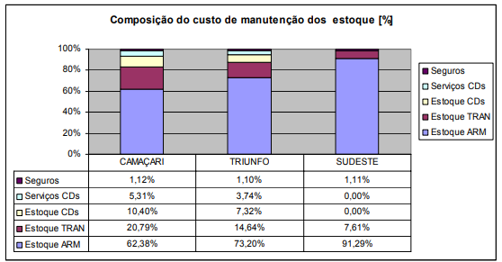 Nas empresas do Sudeste, por exemplo, o custo para manter o estoque é maior que o custo do transporte face à proximidade das empresas aos clientes. Logo, estas empresas precisam focalizar primeiramente a otimização dos níveis de estoques para os de ganhos de eficiência na logística de distribuição.