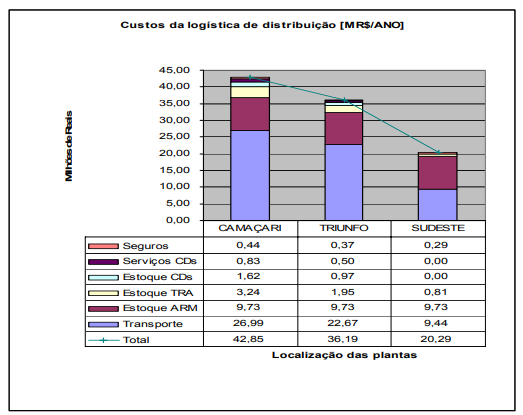 E, focalizando os produtos estocados e movimentados, surge a questão quanto aos níveis de estoques e as necessidades dos centros de distribuição (CD) para abastecer os clientes localizados no mercado do Sudeste. Sob estas supostas desvantagens, a localização das plantas de Camaçari distante dos grandes centros de consumo pode estar interferindo para o desempenho da logística de distribuição dos produtos acabados e conseqüentemente nos resultados financeiros das empresas.