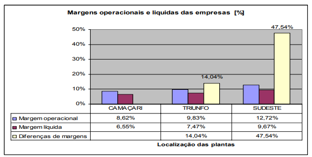 Considerando as equivalências hipotéticas à montante da logística de distribuição, os resultados confirmam que os custos com este processo impactam as margens das vendas das empresas de Camaçari para o mercado do Sudeste.