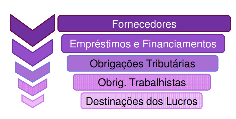 - As obrigações representam o aspecto negativo patrimonial, que é denominado de “Passivo”.