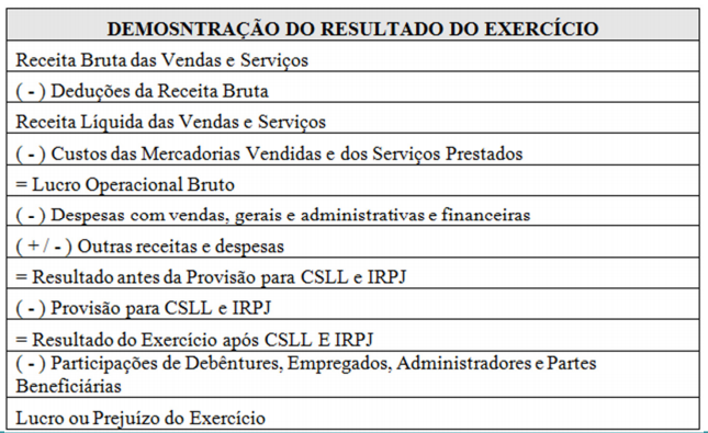 - demonstração do resultado do exercício;