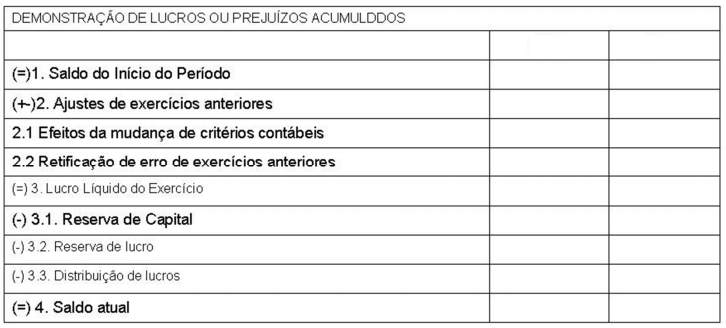 - demonstração dos lucros ou prejuízos acumulados;