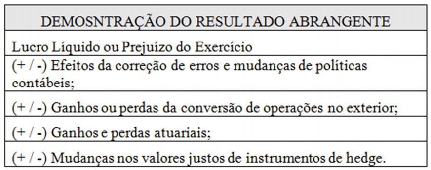 - demonstração do resultado abrangente;