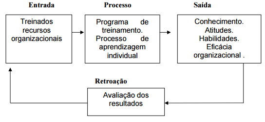 Em todo processo de treinamento deve-se ter o conhecimento de quem vai ser treinado e os recursos (entrada); posteriormente o processo deve ser avaliado e planejado (programas de treinamento) e aplicados conforme a sua necessidade (saída). Após todo o processo deverá ser realizada sua avaliação (retroação).