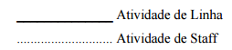 Entende-se Atividade de Staff como sendo uma equipe de pessoas que dá assessoria a um dirigente ou executivo de uma empresa. As atividades de Linha e Staff são responsáveis por todo o processo para a execução do treinamento. Estruturas de linha são aquelas que exercem atividades de “execução e comando” e possuem responsabilidades sob atividades-fins do negócio”.