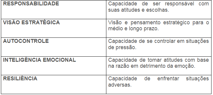 - Atitudes: proatividade necessária para a execução de tarefas que devam ser realizadas em determinado período.
