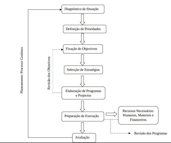 Terminada a avaliação haverá que voltar à primeira fase do planeamento, atualizar o diagnóstico da situação e melhorar a informação disponível. Assim sendo, é importante que o planeamento seja um processo dinâmico e contínuo (Fig.2).