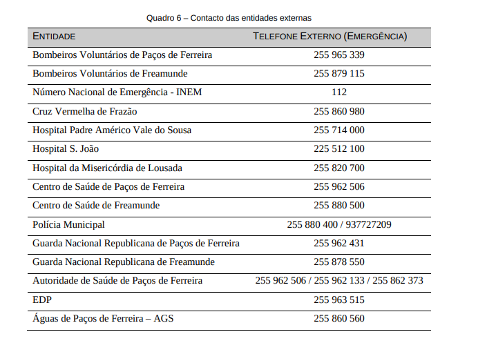 Após efetuada a confirmação do sinistro e avaliada a sua extensão, será accionado o Plano de Evacuação.
