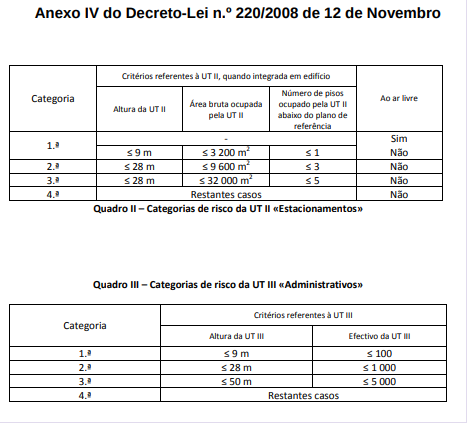Categorias e Factores de Risco – Anexo III do Decreto-Lei n.º 220/2008 de 12 de Novembro