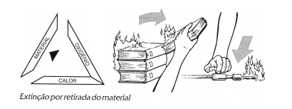 Partindo do princípio de que, para haver fogo, são necessários o combustível, comburente e o calor, formando o triângulo do fogo ou, mais modernamente, o quadrado ou tetraedro do fogo, quando já se admite a ocorrência de uma reação em cadeia, para nós extinguirmos o fogo, basta retirar um desses elementos.