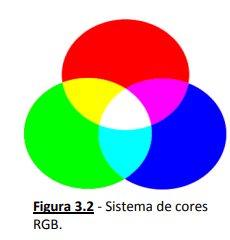 desta década descobriu-se como obter a cor amarela e em 1975 a verde. Depois de diversas pesquisas neste âmbito, o engenheiro japonês Shuji Nakamura desenvolveu o LED de luz azul, passando a ser possível obter a luz branca combinando a cor vermelha, verde e azul (sistema RGB como mostra a Figura 3.2). Alternando as intensidades das três obtém-se uma elevada gama de outras cores [2].