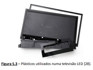 Atualmente os plásticos são utilizados em praticamente tudo o que usamos no dia-adia, em particular nas televisões, devido a variadas razões, como os seus custos relativamente baixos, e as variadas propriedades, como o isolamento elétrico, baixo peso, rigidez... Estes constituem um grupo muito vasto e variado de materiais, que podem ser processados de diferentes formas de acordo com as suas propriedades. No entanto todos eles são polímeros, ou seja são constituídos por vários monómeros, que formam os plásticos ao "ligarem-se" entre si por reações químicas de polimerização [19, 20].