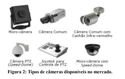 Nesta seção serão abordados os diversos tipos de câmeras utilizadas em CFTV, as tecnologias empregadas e as lentes utilizadas. Uma câmera de vídeo, responsável pela captura da imagem, é constituída de uma lente, que funciona de forma análoga ao olho de um animal. Ela coleta a imagem refletida em um objeto por uma luz incidente, e a transfere a um dispositivo eletrônico que transforma este sinal luminoso em um sinal elétrico. O sinal elétrico no qual é transformada a imagem é naturalmente analógico, podendo ser digitalizado tanto externamente quanto internamente à câmera.