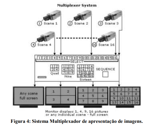 O multiplexador tem uma função semelhante ao Quad, porém processando imagens simultaneamente de uma quantidade maior de câmeras, tipicamente 4, 9, 16 e 32 câmeras.