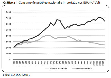 O estilo de vida norte-americano é fortemente dependente do petróleo. Em particular, no setor de transportes 95% da energia consumida é oriunda do petróleo [EIA DOE ( 2009)]. Por essa razão, a grande dependência externa no fornecimento desse energético é considerada questão de importância estratégica para o país.