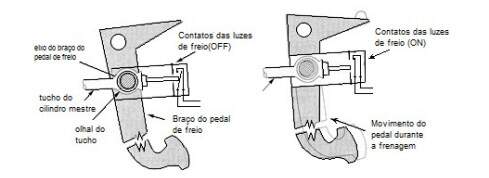 As luzes de freio têm um papel muito importante no que diz respeito à segurança de direção. São comandados por um interruptor fixado na pedaleira, na extremidade do pedal de freio ou diretamente no tubo do cilindro-mestre. A regulagem desse interruptor é particularmente importante, pois deve comandar o acendimento das luzes de freio assim que o pedal de freio é encostado. O menor espaço de tempo no acendimento das luzes de freio reduz o tempo de reação do motorista que está atrás e aumenta os riscos de colisão. Esse interruptor unipolar está sempre sob tensão, também serve para transmitir um sinal ao regulador de velocidade (cruisecontrol) ou ao sistema ABS.