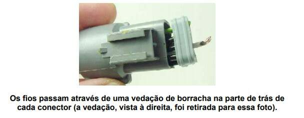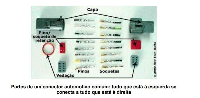 É preciso que eles sejam à prova d'água (conectores modernos possuem uma série de vedações para evitar a entrada de umidade), à prova de corrosão e forneçam um bom contato elétrico para o veículo.