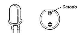 O catodo (lado negativo) de um diodo LED pode ser identificado por um “corte” na base do encapsulamento (fig. 3).