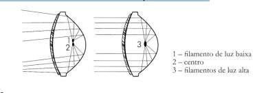 Você já deve ter observado o aspecto particular apresentado por uma lente de farol selado. A superfície interna da lente tem prisma ou estrias. Os prismas desviam uniformemente os raios refletidos, e as estrias desviam progressivamente os raios em duas direções. A forma e a disposição destas figuras são frutos de longos trabalhos de pesquisa. O conjunto dos desenhos específicos gravados na lente orienta os raios refletidos para o lado e para baixo a fim de reduzir o ofuscamento, sem perda de luminosidade. Uma técnica semelhante é usada no desenho das lentes que cobrem a meia luz. A lente de todos os faróis selados possui obrigatoriamente três saliências, elas servem de referência para a montagem de aparelhos de regulagem dos faróis. A tendência atual é no sentido de uma redução geral do peso favorecida pelo uso de materiais plásticos para a lente e para o refletor.
