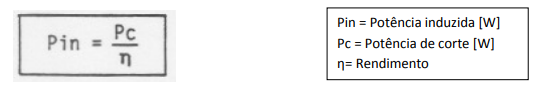 Uma máquina sempre exige uma potência induzida (Pin) maior do que a potência efetiva (Pef) na ferramenta, (Figura 1-12) a diferença entre essas duas potências é a perda por atrito e calor entre os componentes da máquina. A potência efetiva (Pef) é sempre menor que a potência induzida (Pin).