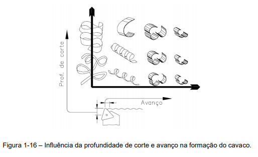 O gráfico abaixo, (Figura 1-16) mostra a Influência da profundidade de corte e do avanço na formação do cavaco.