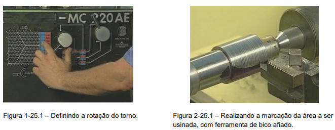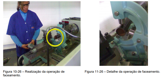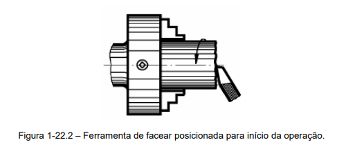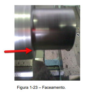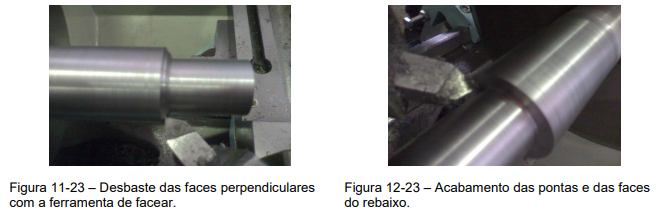 No caso do torneamento de um eixo com rebaixo, que é uma operação que deve ser realizada com muita cautela. Onde o faceamento deve ser realizado de maneira perpendicular e bem acabadas, (Figura 1-23).