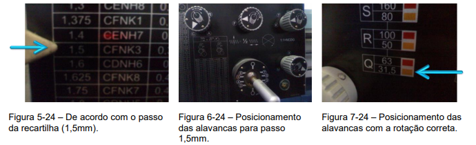 2º Passo – De acordo com o passo da recartilha, posiciona-se as alavancas pra conseguir a rotação correta da máquina, (Figuras 5-24, 6-24 e 7-24).