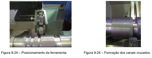 3º Passo – Início da operação de recartilhar, posicionamento da ferramenta no início da área a ser recartilhada, (Figura 8-24), pressiona-se a ferramenta para obter os canais cruzados, (Figura 9-24).