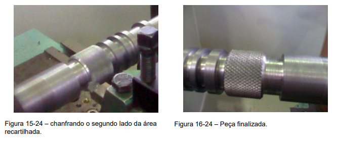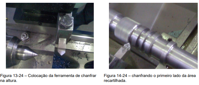 6º Passo – Acabamento da área recartilhada com a ferramenta de chanfrar, (Figuras 13-24, 14-24, 15-24 e 16-24).