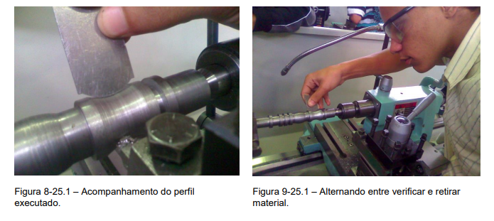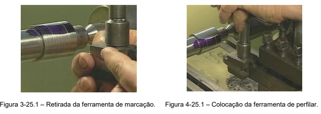 9º Passo – Alternar sempre entre verificar e retirar o material em excesso, sempre com muito cuidado e sensibilidade nas mãos para não aprofundar a ferramenta onde não era necessário. Deve-se ainda tomar muito cuidado para não serem ultrapassadas as marcas que indicam o comprimento a ser usinado, (Figura 9-25.1).
