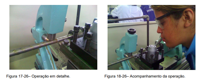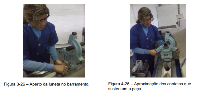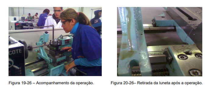 4º Passo – Início da usinagem de peça longa e fina entre pontas, com a utilização da luneta móvel, (Figura 16-26).