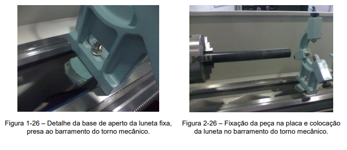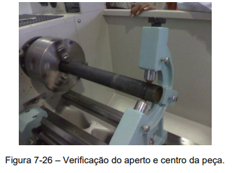 1º Passo – Prender a peça na placa do torno e posicionar a luneta sobre o barramento da máquina, (Figura 2-26).