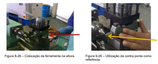 7º Passo – Colocação da ferramenta na altura através de calços, utilizando a contra ponta como referência, (Figuras 8-26 e 9-26).