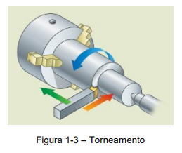 Para tanto, a peça gira em torno de do eixo principal de rotação e a ferramenta, simultaneamente desloca-se numa trajetória no mesmo plano do referido eixo (Figura1-3).