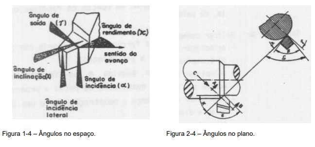 As ferramentas possuem ângulos e superfícies em sua geometria de corte, que são de grande importância e constituem elementos fundamentais do seu rendimento e durabilidade (Figuras 1-4 e 2-4).