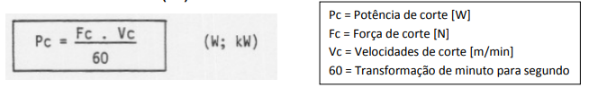 A Força de corte (Fc), força necessária para retirar o cavaco do material a ser usinado. É calculada em função, (Figura 1-9).