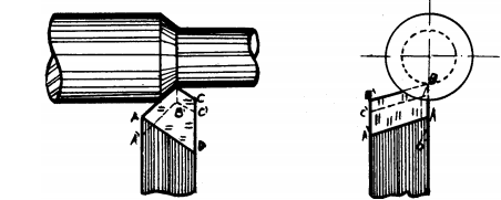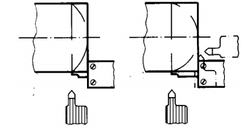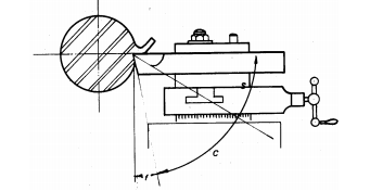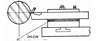 Quanto à altura, monta-se a ferramenta no porta ferramenta de tal forma que, normalmente, fique o bico cortante no mesmo nível do centro da peça, como demonstra a próxima figura.