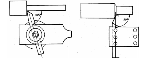 Para o ângulo de direção também usar o ângulo de 45º. O ângulo folga normal é de f=6º e o ângulo de saída mais empregado para trabalhos comuns em aço ao carbono é de s = 29º, conforme demonstra a próxima figura.