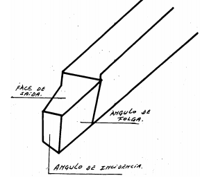 Sua aresta cortante deve fazer um ângulo de 8º a 12º com o plano transversal que por ela está sendo executada, como demonstra a próxima figura