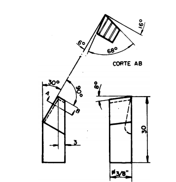 A ferramenta de broquear de aço ao carbono ou de aço rápido forjado apresenta, em geral, a forma indicada pela figura abaixo.