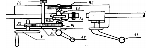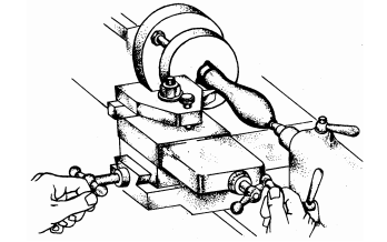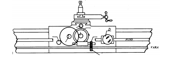 Os deslocamentos laterais da ferramenta são controlados pelo anel graduado existente no eixo girando manualmente o volante do carro porta-ferramenta. A profundidade dos passes é controlada por outro anel graduado no eixo, girando manualmente o volante do carro transversal.
