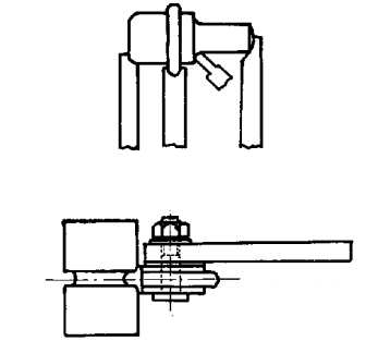 Outro tipo de ferramenta de broquear consiste em um bits de aço rápido, fixado por meio de um parafuso, perpendicularmente ao eixo longitudinal de uma haste apropriada, montada no porta-ferramenta como demonstra a próxima figura. Nesta haste há um orifício transversal de seção quadrada ou retangular, que serve para alojar o bits.