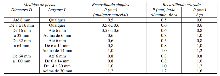 Roscas módulos e diametral Pitch (caixa NORTON)