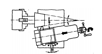 As roscas em superfícies cônicas são construídas com o auxílio do copiador ou com o deslocamento transversal do cabeçote móvel. O eixo da ferramenta deve estar em ângulo reto em relação ao eixo da peça e não em relação à superfície do cone.