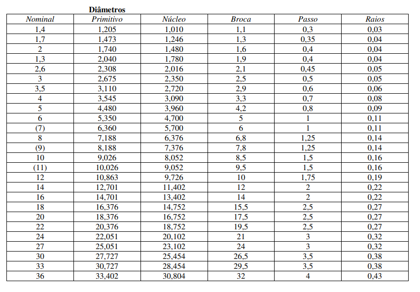 25.9 - Tabela Rosca Métrica Grossa – DIN13 – pino e porca