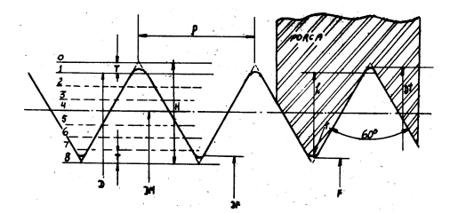Quando a profundidade fixada pelas normas de roscas é atingida, e por meio de verificadores adequados (pente de rosca), a abertura do filete triangular é concluída.
