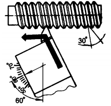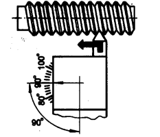 Para abrir rosca triangular por penetração perpendicular da ferramenta e quando a rosca desejada for do sistema métrico, usa-se uma ferramenta com ângulo de ponta de 60º. Para uma rosca do sistema Whitworth, a ferramenta terá um ângulo de ponta de 55º. Empregando-se um verificador de ângulos, conhecido como escantilhão, monta-se a ferramenta com o eixo longitudinal perpendicular ao eixo da peça