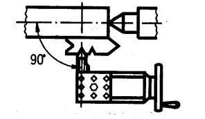 Os filetes quadrados são cortados com ferramentas de lados paralelos, com o suporte da espera colocado exatamente paralelo ao eixo da peça. A profundidade de corte é dada pelo carro transversal. No acabamento. O suporte da espera é usado para mover a ferramenta para a direita e para a esquerda, contra os flancos de filete.