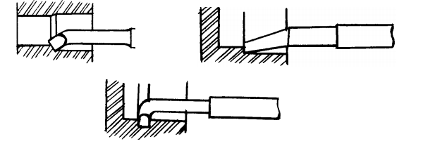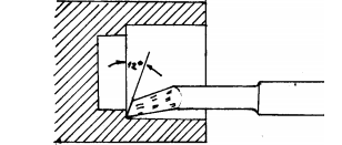 Para evitar o trabalhoso processo de forjamento da ferramenta pode-se usar o bits de aço rápido, bem esmerilhado, afiado no extremo cortante e montado em suporte próprio. Possui este um rasgo interno, de seção quadrada ou retangular, na qual se aloja o bits, em posição inclinada. Sua afiação se faz por meio de um parafuso de aperto, ou pela pressão de uma haste que força o bits contra a parede do furo quadrado. A próxima figura mostra uma ferramenta de tal tipo com o bits faceando o fundo do furo.
